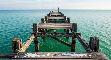 Dilapidated Abandoned pier. View travel harbor. Generate Ai