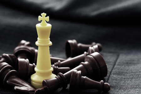 King chess standing alone on black background , Winner of business competition and marketing strategy planing concept.