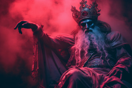 Portrait of the wise king in a blue smoke. Fantasy.