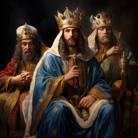 The three wise men or three kings on a journey to see the baby jesus