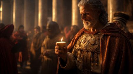 Roman Emperor participating in a sacred Roman ritual in a Roman temple