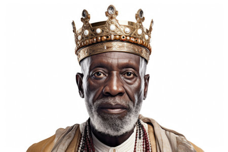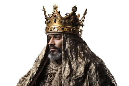 A picture of a man wearing a crown on his head. Can be used to represent royalty, leadership, or a king.