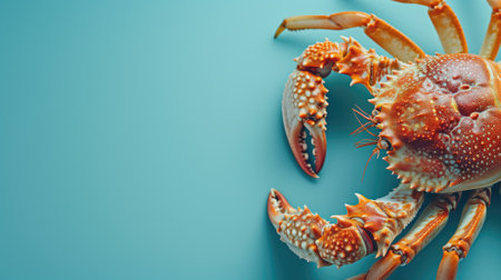A stunning array of various fresh crustaceans creates an eye-catching design, showcasing culinary beauty and ocean freshness in a vibrant blue backdrop to enhance visual appeal.