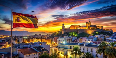 Ceuta Silhouette at Dusk: Spanish Flag, Low Light Photography