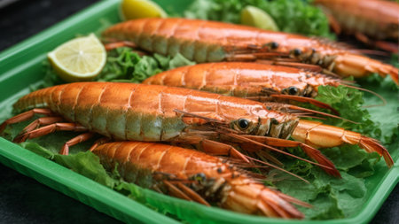 close-up of tiger shrimp prawn, the texture and color of its skin on display, created with generative ai