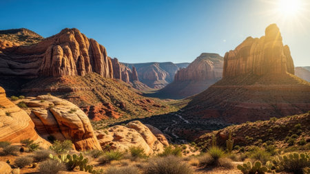 AI Generated. Breathtaking canyon landscape with towering red rock formations