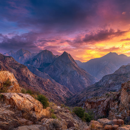 Colorful sunset over the mountains in Sinai desert, Egypt, Africa