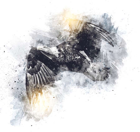 Bald eagle swoop landing hand draw and paint on white background illustration