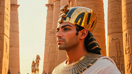 Portrait of the great Egyptian pharaoh in the temple of Thebes, Egypt