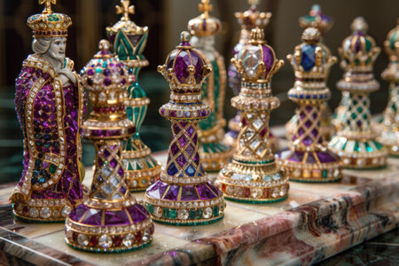 A row of statues of Egyptian pharaohs are lined up on a background. The statues are all different sizes and colors, but they all have the same design and pose