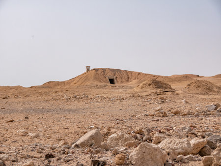 View of the entrance to an old abandoned military bunker. bomb shelter.