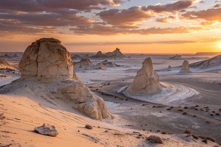 Fairy chimneys at sunset, Badlands National Park, South Africa