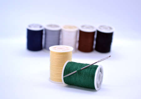 Colorful sewing thread placed on a white back