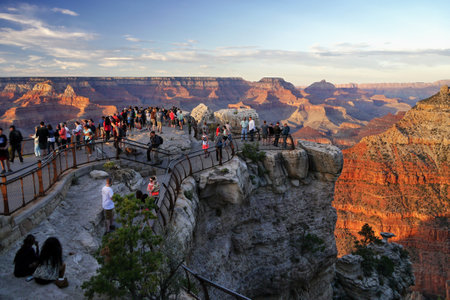 Grand Canyon, Arizona, USA. May 01, 2012: Tourists admire the stunning sunset at Grand Canyon National Park, from a popular viewing point.