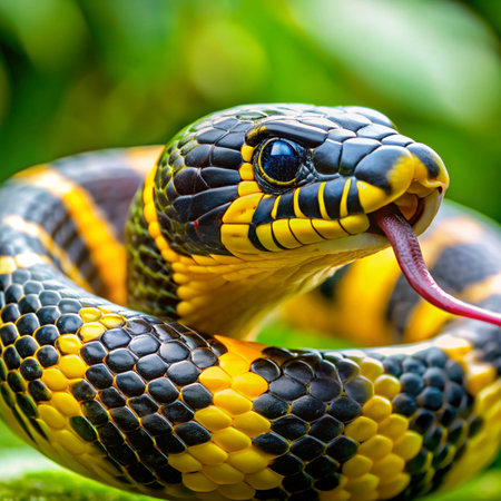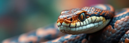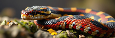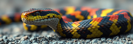 Colorful snake with vibrant scales captured up close in a natural habitat during daylight hours
