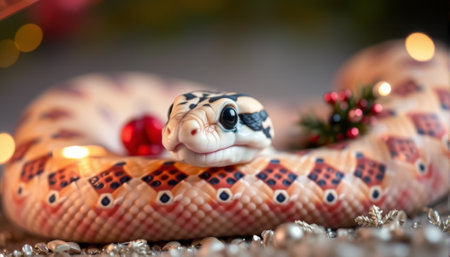 Red and Black Festive Snake On Seamless Christmas Red Tinsel Garland With Fairy Lights