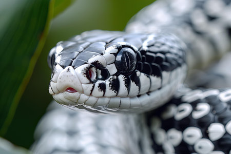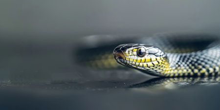 Close up of a Majestic Black Snake with Shiny Scales and Intense Eyes in Natural Habitat AI Generative