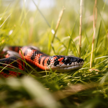 An AI generated illustration of a vibrant-colored snake in a field