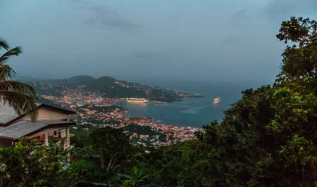 A scenic overlook just aver dusk on St Thomas in the US Virgin Islands.