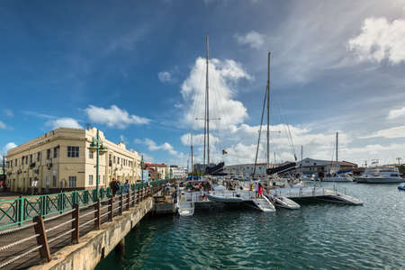 Bridgetown, Barbados - December 18, 2016: The downtown marina of Bridgetown, Barbados. Historic Bridgetown and its Garrison is a World Heritage Site of UNESCO.