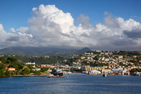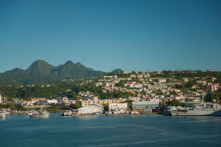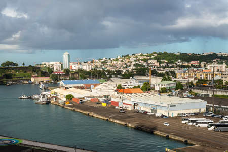 Fort-de-France, Martinique - December 19, 2016: Cityscape in cloudy weather of Fort-de-France, Martinique, Lesser Antilles, West Indies, Caribbean. View from the cruise ship.