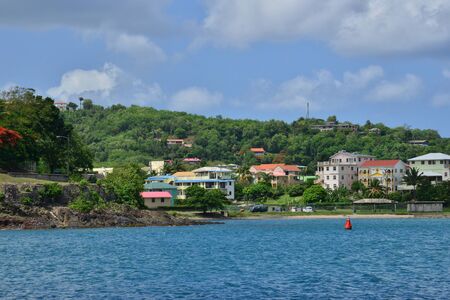 Roseau, Dominica - December 4, 2011: A panorama of Roseau, capital of Dominica, taken from a ship overlooking the city.