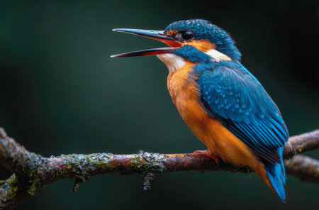the beauty of nature as a kingfisher catches a fish in cinematic lighting, created with Generative AI