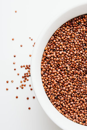 quinoa seed for healthy nutrition with a spoon on a white background. High quality photo