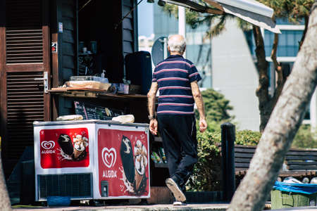 Limassol Cyprus May 06, 2020 View of unidentified people walking at the promenade front the sea in Limassol during the coronavirus outbreak