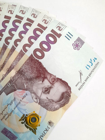 Ukrainian money. 1000 banknotes in a corner with a copy space.