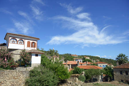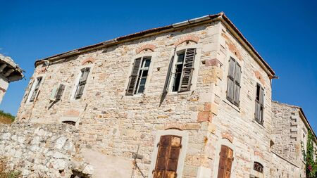 Foca, Izmir, Turkey - August 2013: Historic and abandoned houses of resort town of Foca