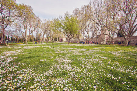 Kagithane,istanbul,Turkey-March 25,2022.Kagithane district on the shore of the Golden Horn with its green parks, historical and modern buildings.