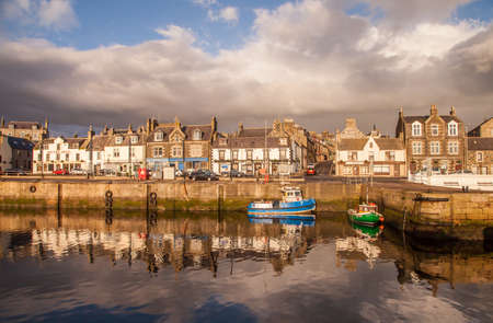 Macduff Harbortown at sunset scotland