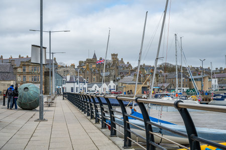 Lerwick, a coastal town in Shetland Scotland, UK, with scenic medieval houses.