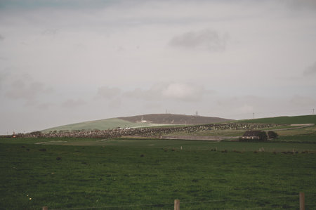 Orkney (Scotland), UK - August 07, 2018: The country landscape in the middle of Orkney's island, Scotland, Highlands, United Kingdom