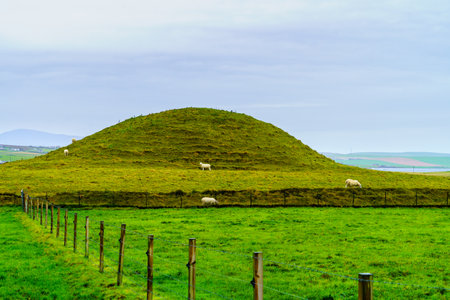 View of the Maeshowe, Neolithic chambered cairn and passage grave, Mainland Orkney, Scotland, UK