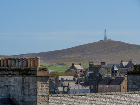 Lerwick town center under blue sky, Lerwick, Shetland, Scotland, United Kingdom