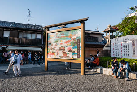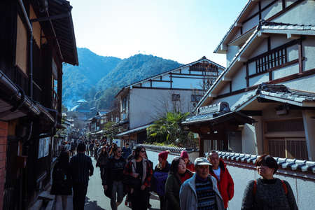 Kyoto, Japan - April 3, 2018 : A popular tourist district known as Ninenzaka in Kyoto.