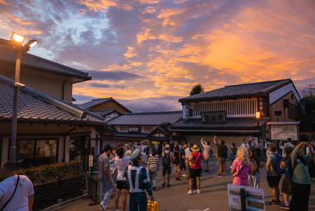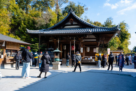 Kyoto, Japan - November 25, 2024: Crowd of tourists in Ninenzaka street leading to Kiyomizu-Dera temple