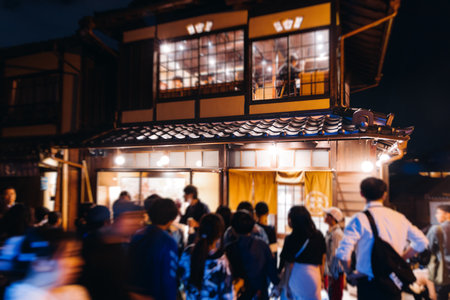 Many tourists walk in Gion area in Kyoto Japan