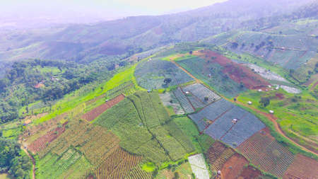 A view of the hillside filled with vegetable plantations in the Cikancung area, Indonesia
