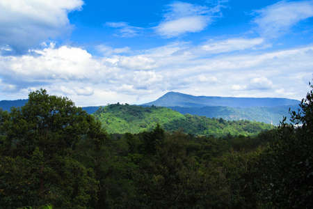 Wide panoramic view of meadow and mountains national park, Thailand.
