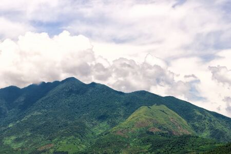 Mountain in the cloudy morning, Asia. Green valleys, peace of nature.