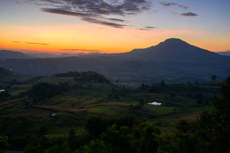 Beautiful sunrise over the mountain range in the morning, Bali, Indonesia
