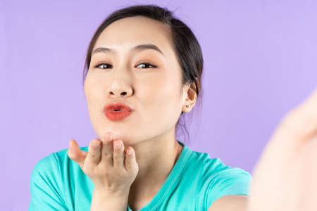 Pretty asian girl take a self portrait with her smart phone. Thai girl selfie.
