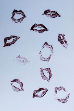 Red lipstick mark on white paper Kisses on a paper, concept of love, passion