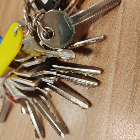 A bunch of door keys lying on the table as a symbol for various situations