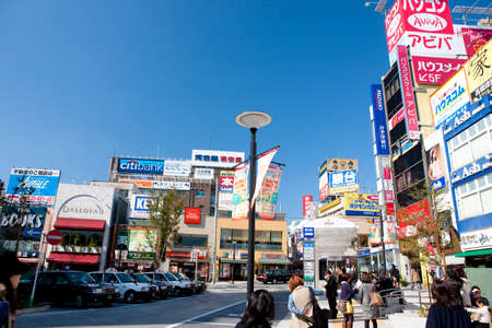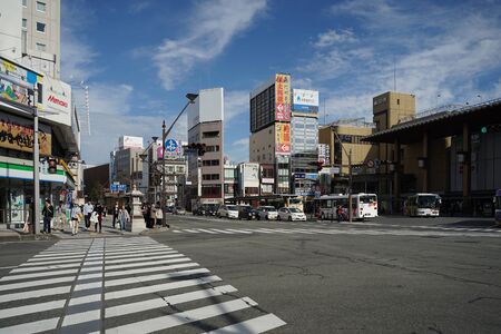Nagano, Japan- 4 November,2018 : People walking and waiting for the traffic light in front of zebra crossing at The main Nagano train station in the sunny day on 4 November,2018 in Nagano, Japan