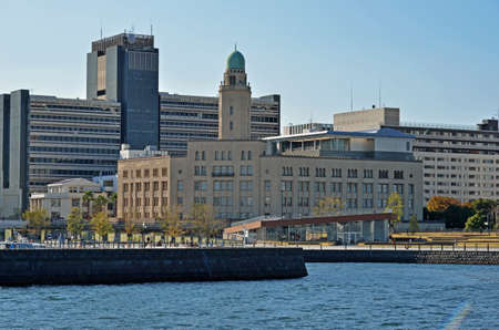 Retro scenery of Moji Port, a famous tourist spot in Kitakyushu with beautiful summer blue sky