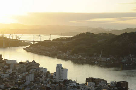 The Sekimon Strait and Moji Port Retro Sunset seen from the Retro Observation Room of Moji Port